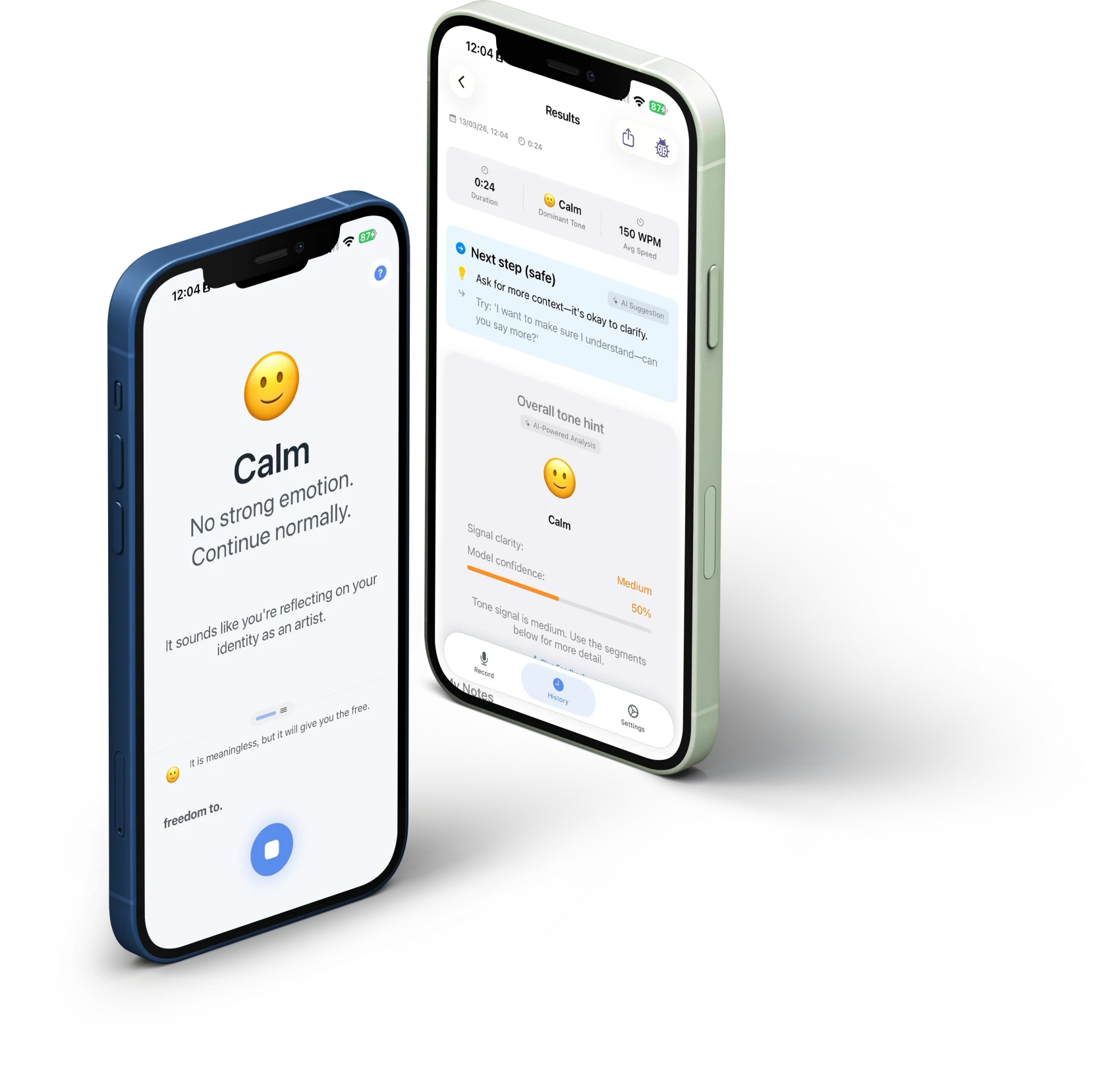 The real-time reading changes everything. I don't have to replay the conversation in my head — I can see the tone while it's happening.